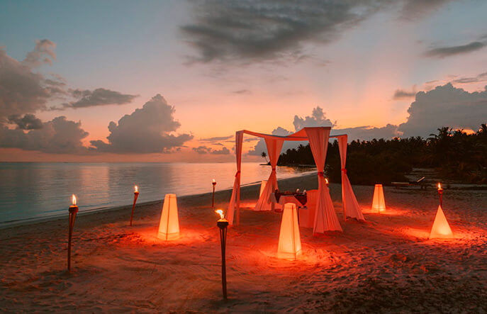 Все резорты Южного Ари подходят для медового месяца, юбилея свадьбы и просто отдыха влюбленных. Потрясающие пейзажи, изысканные спа-процедуры, приватные ужины, символические свадьбы в самых красивых локациях, комплименты от отелей – все это делает романтический отдых на Мальдивах поистине незабываемым.