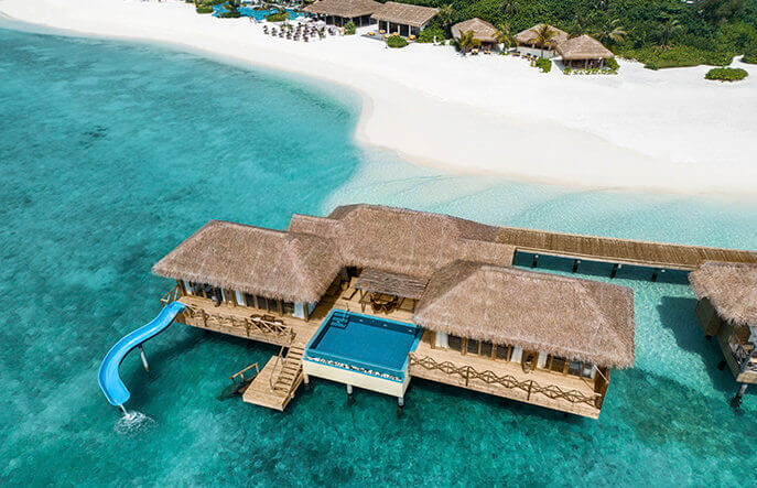 К сожалению, в атолле Раа почти нет отелей с горками. Исключение составляют лишь надводные люксы в You & Me Maldives и горки в аквазонах детских клубов (например, в InterContinental Maldives Maamunagau Resort и Joali Maldives).