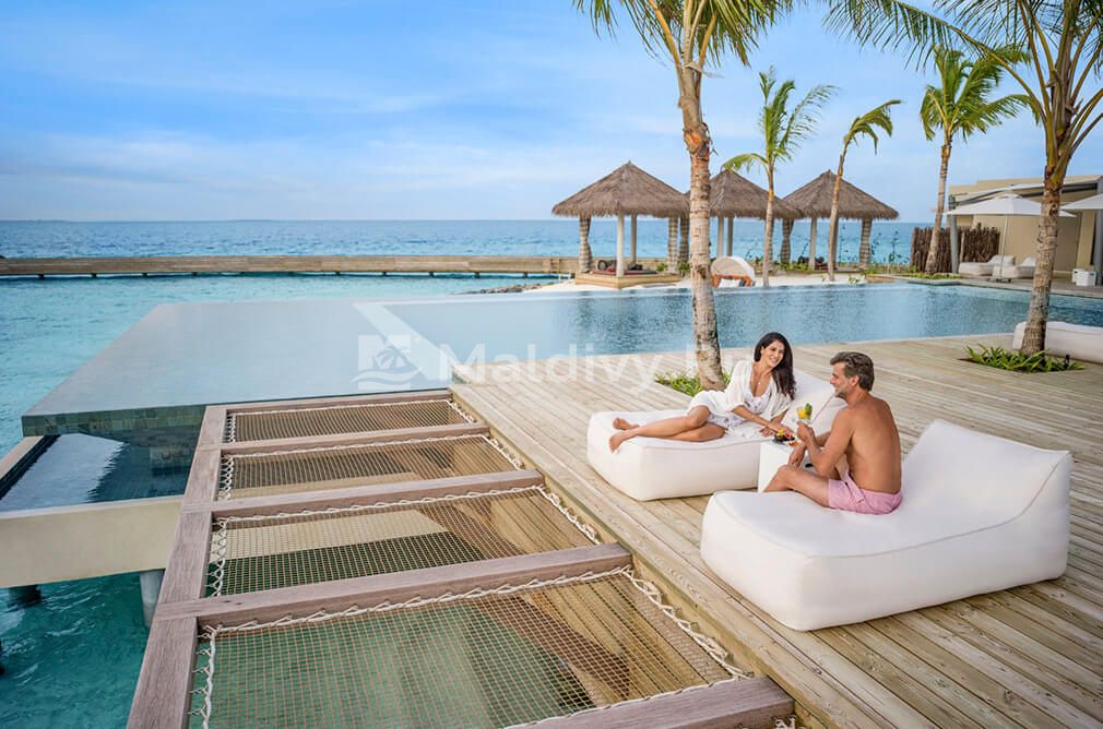 Имеет смысл рассмотреть и альтернативные варианты. Например, в OBLU Sangeli горка спускается прямо в океан, в Hard Rock Hotel Maldives – в главный бассейн, а InterContinental Maldives Maamunagau и Holiday Inn Kandooma обустроили мини-аквапарки в детских клубах.