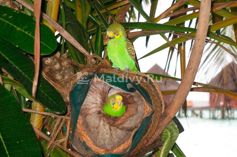 - попугайчиками – они живут на воле в Thulhagiri Island Resort & Spa Maldives