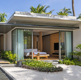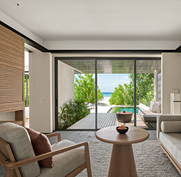 Номерной фонд великолепного Alila Kothaifaru Maldives включает 80 роскошных надводных и пляжных вилл с приватными бассейнами. Лаконичная современная архитектура органично вписывается в идиллические пейзажи, а стеклянные окна-двери в пол создают гармоничные приватные пространства без границ и условностей. В интерьерах доминируют природные материалы, отражающие трендовую экоконцепцию отеля и его стремление к устойчивому развитию.