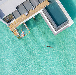 Удивительная композиция из 36 надводных вилл раскинулась над идиллической лагуной и нетронутым рифом острова Котайфару. Она имеет форму цветка с тремя грандиозными лепестками, венчающимися площадками для спуска в воду и фотосессий. Все виллы над водой Alila Kothaifaru Maldives дополнены приватными террасами, бассейнами и просторными ванными комнатами. Жилое пространство представлено в виде стильных спален-студий.