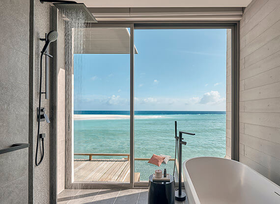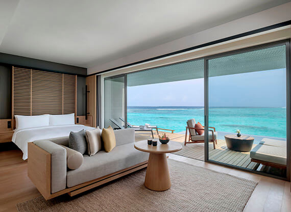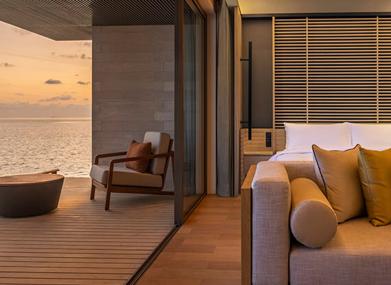 Очаровательная Sunset Water Villa (Вилла над водой с видом на закат) – образец современного минимализма, органично вписанный в дивную мальдивскую природу. Архитектурное решение и интерьер виллы отсылают к трендовой концепции босоногой роскоши, дополненной безупречным рум-сервисом. В награду каждому гостю Alila Kothaifaru – ослепительные мальдивские закаты, которыми можно любоваться бесконечно!