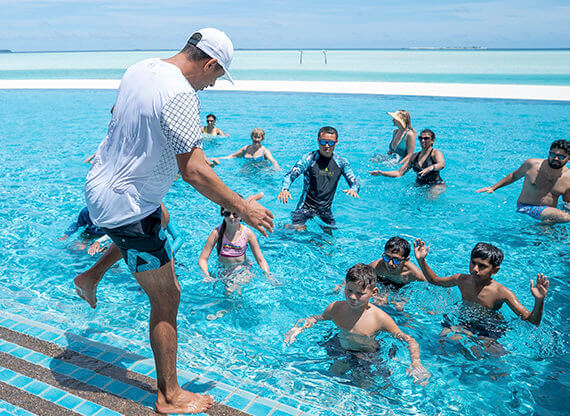 Лучший снорклинг на домашнем рифе – вокруг островка Галифуши, расположенным в паре минут езды на спидботе, но есть классные места, доступные и с берега. Не умеете снорклить? К вашим услугам уроки от инструкторов Aquafanatics для детей и взрослых. Помимо этого, центр организует групповые и приватные снорк-сафари по самым живописным коралловым садам, предлагает подводные рандеву с дельфинами, мантами китовыми акулами и акулами-няньками. Незабываемые приключения в Индийском океане гарантированы!