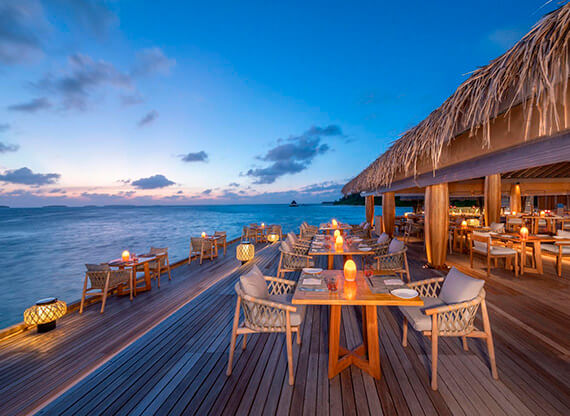 Ресторан Spice – коллекция пряных вкусов и ароматов, тщательно отобранных для гостей Anantara Kihavah Maldives Villas из всего гастрономического многообразия бескрайней Азии. Попробуйте традиционный индонезийский сото аям, китайский салат с крабами и сычуанским перцем, восхитительную баранью отбивную тандури по-индийски или еще что-нибудь фантастическое из обширного меню этого надводного кулинарного царства. Сомелье непременно порекомендует вам лучшее вино к столь изысканной трапезе!