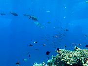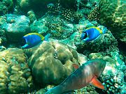 В воде – еще шикарнее. Скаты и рыбки подплывают прямо к вилле, туристы их подкармливают, хотя это не рекомендуется. Риф с удобнейшим доступом и массой рыбок, водяных анемонов, всяких моллюсков. особенно классно у Желтой стены: она реально как золотая из-за кораллов.