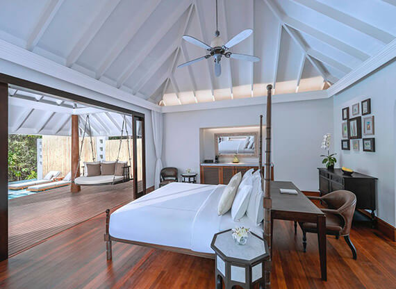 Восхитительная Sunset Beach Pool Villa (Пляжная вилла с бассейном и видом на закат) – оазис босоногой тропической роскоши и свободы, приютившийся на западном побережье Anantara Kihavah Maldives Villas. Здесь изумрудная зелень встречается с мягким коралловым песком, яркое солнце играет бликами по глади бассейна, а в стенах роскошной виллы с аутентичным интерьером всегда царит блаженная прохлада.