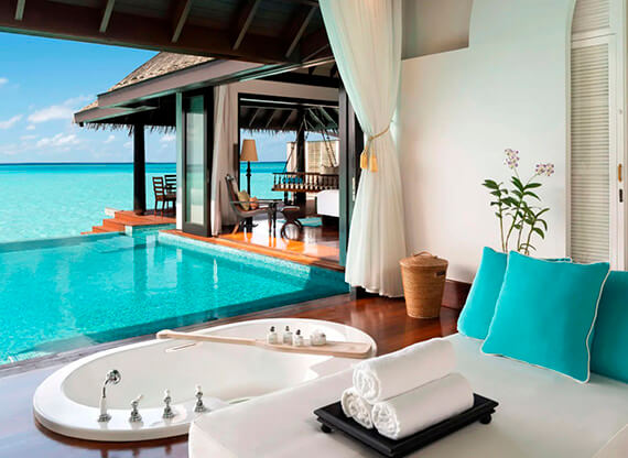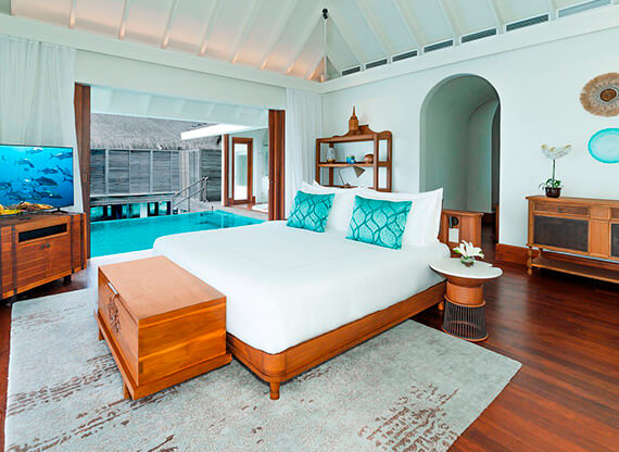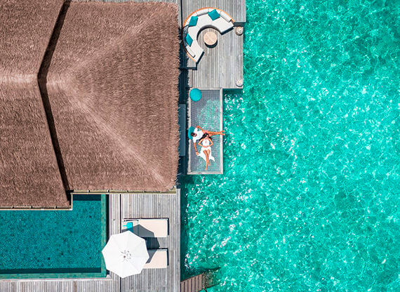Релаксируйте на грандиозной кровати king-size или в восхитительной ванне со стеклянным дном, купайтесь и снорклите прямо с порога, а по вечерам располагайтесь на надводной сети и наблюдайте за шоу мальдивских закатов, неспешно потягивая коктейли!
