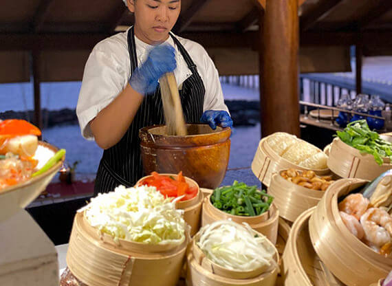 Ресторан Baan Huraa – коллекция лучших вкусов и ароматов различных регионов Таиланда. Гости Anantara Veli Maldives могут отведать креветочные котлетки во фритюре из Сиама, кисловато-пряный суп том-ям, крабов в кремовом соусе из желтого карри, ароматный жасминовый рис и другие деликатесы королевства. А изысканные десерты из риса с манго или бананов в кокосовом молоке станут достойным завершением великолепной трапезы!