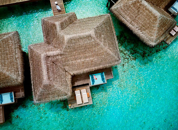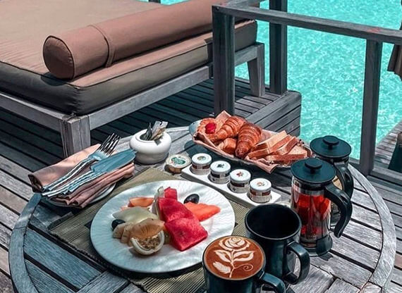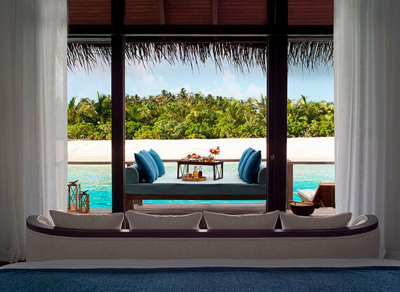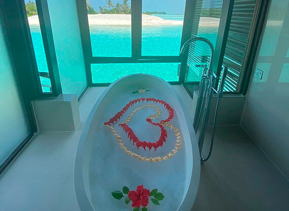 Погрузитесь в роскошную ванну, налейте шампанского и наблюдайте, как по лазурным водам играют солнечные лучи. Отдохните на шезлонгах, а затем поплавайте в лагуне – быть может, повстречаете черепаху. Завершите восхитительный день изысканным ужином сервированным на террасе!