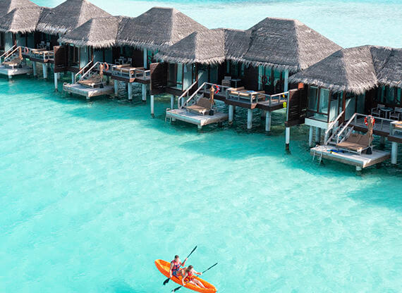 Роскошная Deluxe Over Water Villa включает просторную спальню с королевской кроватью и полный спектр вспомогательных помещений. Ванная комната дополнена отдельным санузлом и душевой, двойным туалетным столиком и полноразмерной ванной. Имеется просторная гардеробная, способная служить как будуаром, так и рабочим кабинетом. Изюминка виллы – просторная двухуровневая терраса.