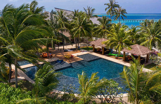 - Люксовый резорт с тропическими садами, шикарными пляжами и рифом