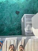 Лежу на террасе виллы над водой, пью Moet, пишу отзыв. Жена уже ушла в спа, сын умчался в детский клуб, я просто наслаждаюсь отдыхом. Иногда поглядываю в воду, вижу рыбок, ската. Классно!