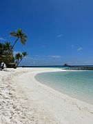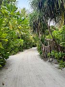 Остров небольшой, но очень зеленый. Пляжи неплохие, но возле нашей виллы он был очень узкий. Обломки кораллов в воде есть, но это нормальное природное явление. Риф обесцвечен, как и везде на Мальдивах, но на больших глубинах встречаются достаточно интересные участки. Наверное, потому, что отель активно занимается восстановлением рифа. Кстати, мы тоже в этом поучаствовали под руководством местного морского биолога.