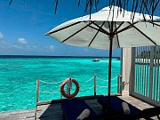 Мы в Baglioni уже в третий раз, очень любим этот отель. В этот раз с нами поехала дочь с мужем, и открылся небольшой нюанс. Водных вилл на две пары в отеле нет, а мы обожаем жить над водой и снорклить прямо с порога и чтобы никто не мешал. Кстати, в Baglioni стоит ехать хотя бы из-за панорамного рифа. Он один из лучших на всех Мальдивах.