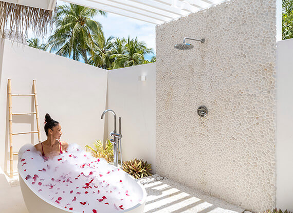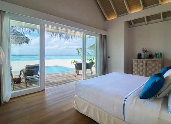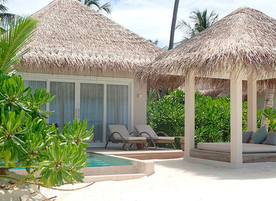Стильная Deluxe Beach Villa with Pool (Пляжная вилла делюкс с бассейном) – восхитительный комплимент побережью Средиземноморья, но с аутентичным мальдивским колоритом. Элегантные виллы этой категории украшают восточное побережье острова Маагау, практически вплотную примыкая к безупречному пляжу. Дизайнерские интерьеры, реализованные в светлых тонах, эксклюзивные дополнения, современная техника, безупречный сервис – чего еще пожелать?