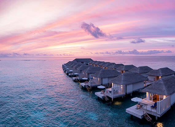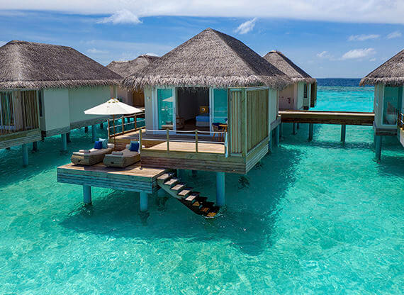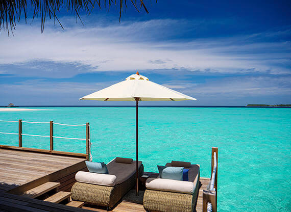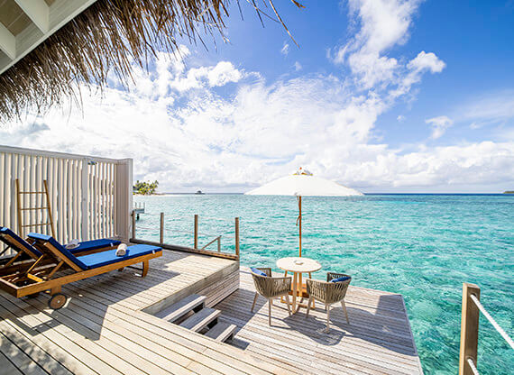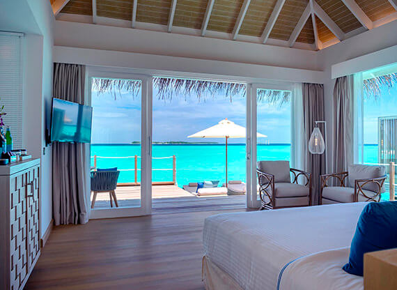 Идиллическая Sunset Water Villa (Вилла над водой с видом на закат) – восхитительное убежище, будто вырастающее из лазури Индийского океана. Здесь вы найдете все, о чем мечтали: абсолютное уединение, стильные интерьеры, отсылающие к белоснежным виллам побережья Амальфи, весь спектр техники, обеспечивающей роскошный релакс, восхитительный текстиль от Frette, уходовую косметику Insium и фирменное внимание к деталям от Baglioni Resort Maldives.