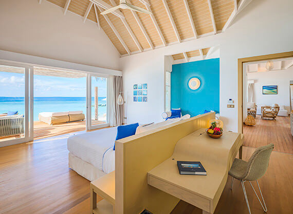 Светлая и просторная Two Bedroom Family Beach Villa with Pool (Пляжная семейная вилла с двумя спальнями и бассейном) – это совершенство по-итальянски, умноженное вдвое. Перед вами изысканный дуэт из двух роскошных близнецов-сьютов, предназначенных для дружных компаний и больших семей. Безупречный пляж начинается сразу же за приватным бассейном – одним из самых больших в Baglioni Resort Maldives, а изысканности интерьеров могут позавидовать лучшие виллы побережья Амальфи.