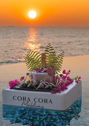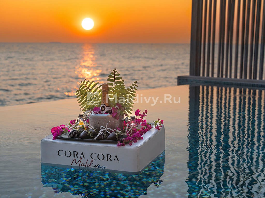 Идеальное утро в Cora Cora Maldives начинается так: ласковые лучи солнца, скользящие по водной глади, роскошная вилла с бассейном, изысканный завтрак, сервированный в плавучей корзине – и только вы вдвоем!