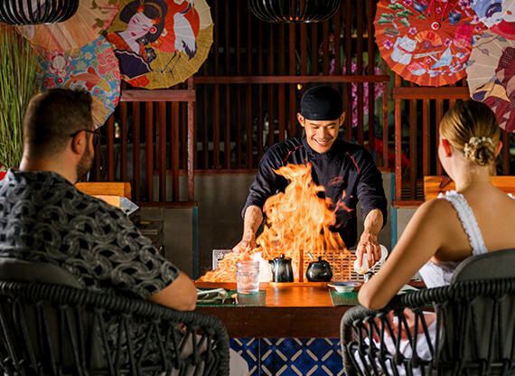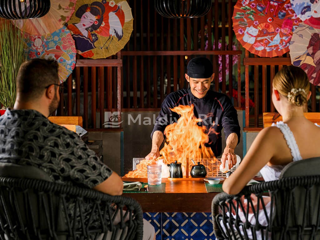 Теппаньяки в Teien, Destination Dining и In-Villa Dining в Gourmet Meal Plan не входят.