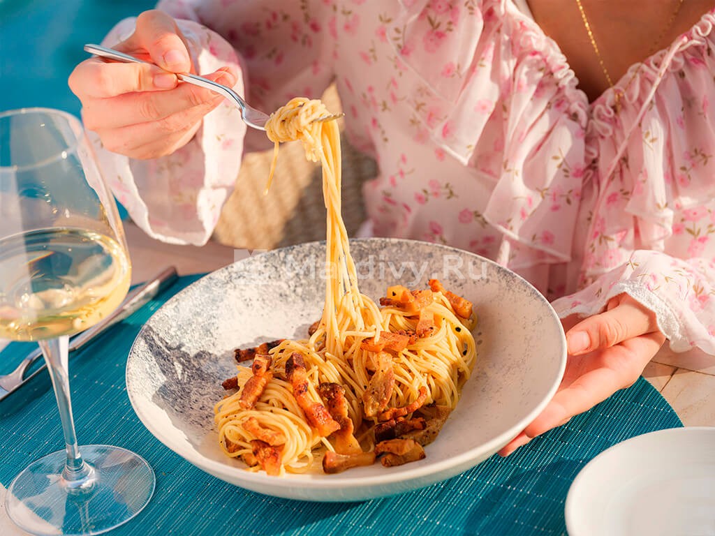 Главный ресторан Tazäa предлагает гостям Cora Cora совершить увлекательный гастрономический вояж с материка на Мальдивы. Пройдите по легендарной Дороге специй, наслаждаясь каждым вкусом и ароматом. Путешествие в формате шведского стола, изысканных блюд a la carte и тематических кулинарных вечеров начинается!