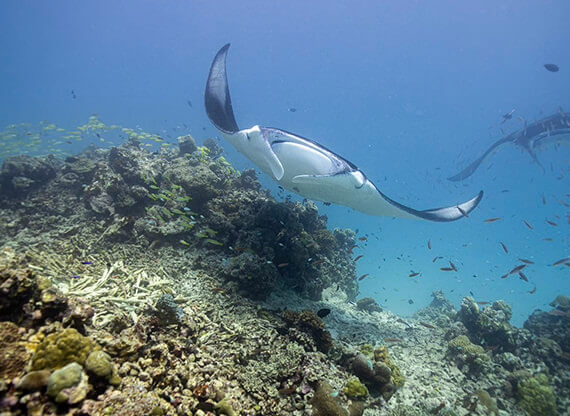 С мая по ноябрь проводятся туры в Ханифару-бэй, где можно поснорклить с мантами и китовыми акулами. От отеля до легендарной манта-поинт – всего 15 минут на спидботе!