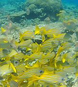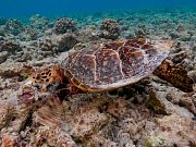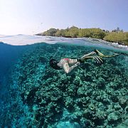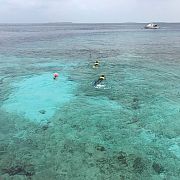 Я на Мальдивах уже в 6 раз. Точно могу сказать, такого рифа как в этом отеле я не видел никогда. Он, конечно, не очень яркий, но это беда всех Мальдив. Зато живности так много, что разбегаются глаза. Например, черепах я видел при каждом погружении. Часто встречались барракуды, небольшие акулы, групперы и другие рыбы. Один раз заметил мурену в засаде. Страшная внешне рыба, но практически безвредная, если вы не сунете ей руку в пасть.