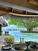 Dusit Thani Maldives теперь любовь всей моей жизни. Мне понравилось все, но особенно хочу отметить потрясающе вкусную еду. Ресторанов в отеле всего 3 (плюс суши бар). Есть еще 2 бара, над водой и у главного бассейна.