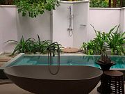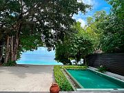 Мы бронировали пляжную виллу с 2 спальнями. Фактически это комплекс из 2 бунгало, которые как бы и вместе, и отдельно. Все удобства на месте вплоть до душей и ванных в саду. Есть вполне приличный бассейн и приватный участок пляжа. Самое любимое место – беседка на пляже с диванами. Мы там обожали ужинать и отдыхать.