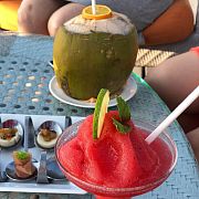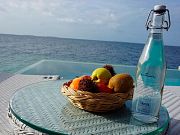 Слышала, что мальдивцы не слишком расторопны в сервисе, но тут я такого не заметила. Официанты обслуживали нас моментально, причем подходили по несколько раз и спрашивали, не нужно ли нам что-нибудь. Особенно запомнились Сами и Шахид из The Market, которые постоянно обслуживали наш столик. Ассортимент фрешей и фруктов просто грандиозный! Арбузы, дыни, драгон, гуава, чомпу, апельсины, папайя, кокосы. По твоей просьбе фрукты красиво нарежут и разложат на тарелочке.