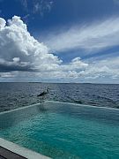 Этим летом отдыхали в Dusit Thani Maldives. С погодой повезло. За две недели дождь был только два раза, ветра не сильные, даже приятно. Океан с волнами не напрягал вообще. Вода была чуточку мутная, но плавать в рифах нормально.