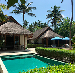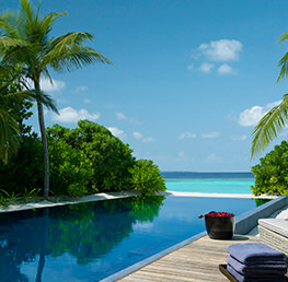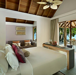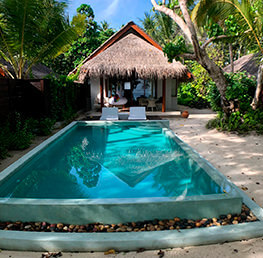 - Three Bedroom Beach Pool Residence (Пляжная Резиденция с тремя спальнями и бассейном). Эта конфигурация включает упомянутую выше роскошную Two Bedroom Beach Pool Residence и соседнюю уютную Beach Villa with Plunge Pool.