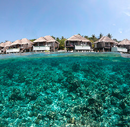 Виллы находятся над водой, в непосредственной близости от лагуны и великолепного домашнего рифа. Однако вход организован не с общего пирса, а непосредственно с пляжа, по персональным мосткам.