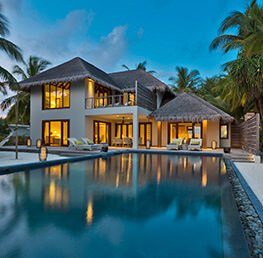 - Two Bedroom Beach Pool Residence (Пляжная резиденция с двумя спальнями и бассейном). Роскошный двухэтажный особняк в колониальном стиле расположен на приватном пляже, в окружении благоустроенного тропического парка. Помимо двух гостевых сьютов здесь имеется просторная гостиная с обеденной зоной, кладовая-кухня, приватный джим, большой пейзажный бассейн, множество обеденных и рекреационных локаций.