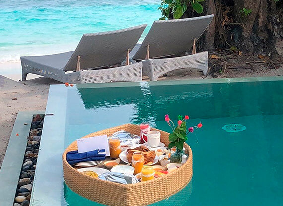 Расслабляйтесь на грандиозной королевской кровати, пейте шампанское на приватной террасе, заказывайте плавучие завтраки прямо в бассейн – черпайте радость бытия в Dusit Thani Maldives полной ложкой!