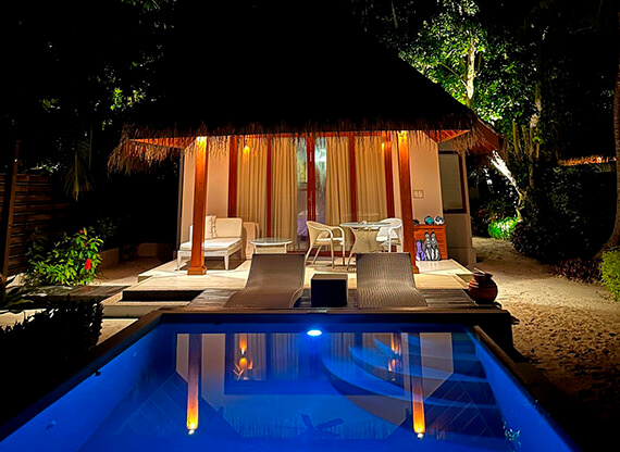 Beach Front Pool Villa (Вилла с бассейном и прямым доступом к пляжу) – восхитительное уединенное бунгало, притаившееся в тропическом саду на берегу Индийского океана. Здесь загадочные тайские мотивы перемешаны с экзотическими мальдивскими нотками, что проявляется как в экстерьере, так и в интерьерах виллы. Это порождает дивную тропическую гармонию, созданную специально для вас.