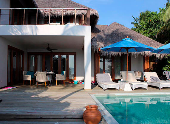 Эксклюзивная Three Bedroom Beach Pool Residence (Пляжная резиденция с тремя спальнями и бассейном) – ваш личный дворец на берегу бескрайнего Индийского океана. Она является законной гордостью Dusit Thani, воплощая все лучшее, что могут предложить Мальдивы самым высоким гостям. Белоснежный двухэтажный особняк, соседствующий с уютной виллой, грандиозная прилегающая территория с тропическим садом, бассейном и массой зон для релакса, поистине звездный сервис – вот составляющие вашего безупречного отдыха.