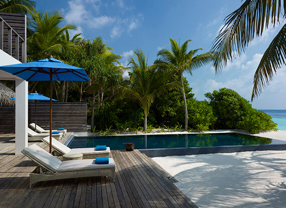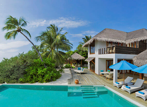 Невероятная Two Bedroom Beach Pool Residence (Пляжная резиденция с двумя спальнями и бассейном) – сияющая жемчужина коллекции Dusit Thani Maldives, способная удовлетворить самые высокие запросы. Представьте себе белоснежный двухуровневый особняк, доминирующий над приватным ландшафтным парком, большим инфинити-бассейном и идиллическим пляжем, добавьте сюда стильные тайско-мальдивские интерьеры, безупречный сервис и потрясающие виды – и получите портрет идеального убежища в тропическом раю.