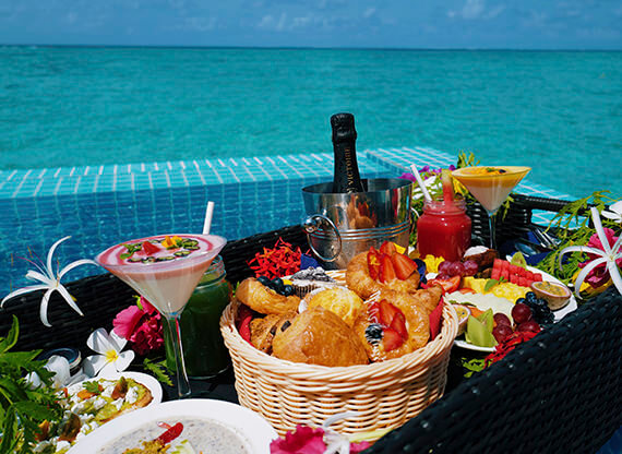 Начните утро в Emerald Maldives Resort & Spa с восхитительного завтрака в бассейне. Плавучая корзина с фруктами, сырами, ароматной выпечкой, мясными и рыбными деликатесами, и, конечно, ледяным шампанским – это великолепный старт нового дня на Мальдивах!