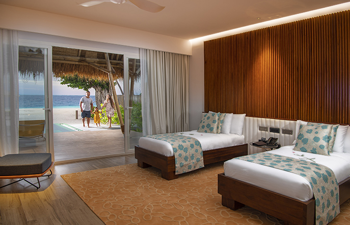 Во всех виллах отеля допускается размещение семей минимум с двумя детьми. Большим семьям рекомендуем обратить внимание на флагманские виллы Emerald Maldives Resort & Spa.