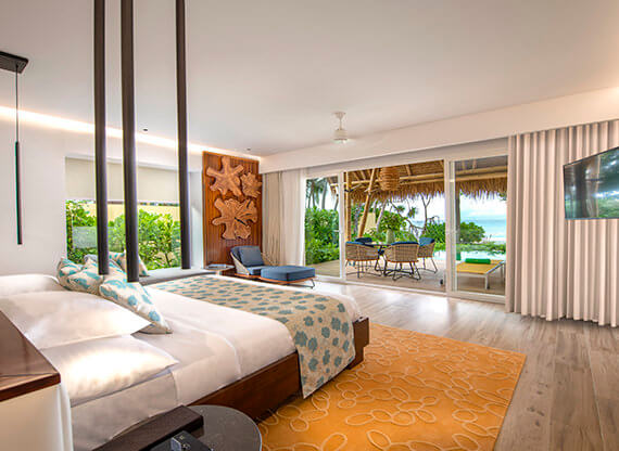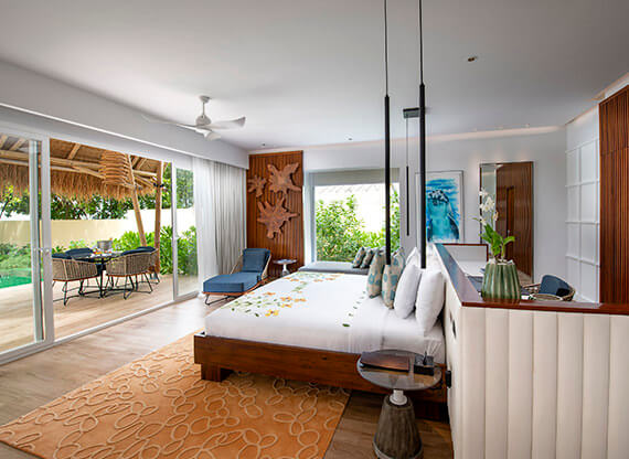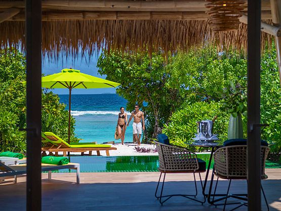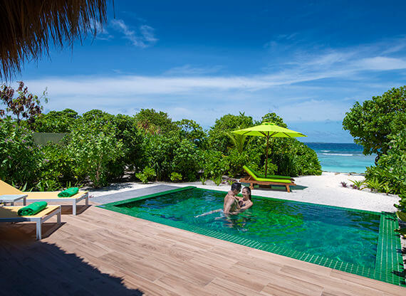 Элегантная Beach Villa with Pool (Пляжная вилла с бассейном) – образец идеального островного убежища от Emerald Maldives, затерянного в бирюзовых просторах Индийского океана. Она представляет собой гармоничный альянс итальянской роскоши и тропической свободы, где дизайнерские интерьеры и технические новинки мирно соседствуют с буйством природы. Очаровательная кондиционированная спальня – и идиллический пляж, стильная ванная с премиальной сантехникой – и душевая под звездами, бассейн с системой циркуляции воды – и плещущийся рядом океан.
