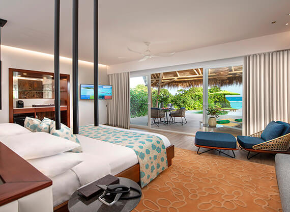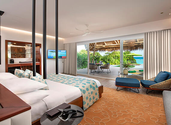 Начните утро с тропического душа в приватном патио или романтического завтрака в бассейне, наслаждайтесь изысканными напитками и снеками в течение всего дня, расслабьтесь на королевском ложе в преддверии новых открытий и приключений!