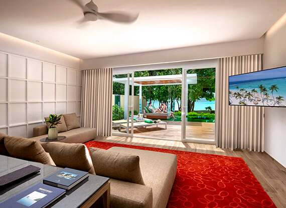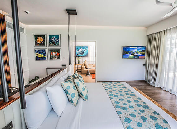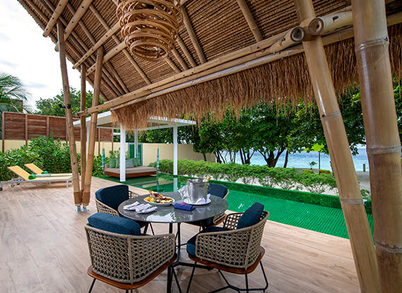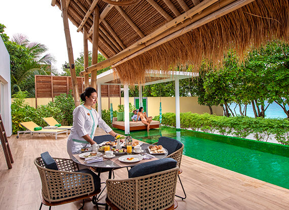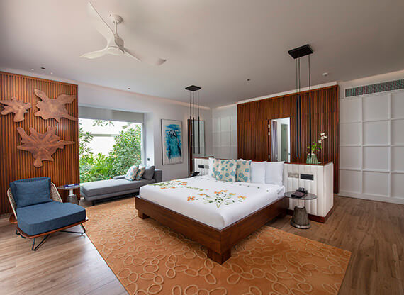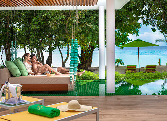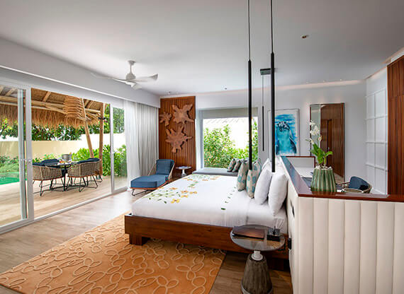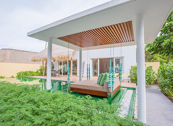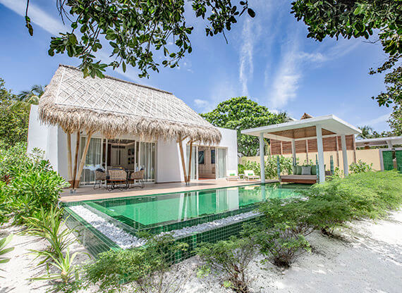 Великолепная Superior Beach Villa with Pool (Пляжная вилла супериор с бассейном) – элегантный особняк, украшающий северное побережье Emerald Maldives. Две виллы этой категории словно стражи окружили приватную локацию королевской резиденции, мало уступая ей по части роскоши и эксклюзива. Трио из просторной спальни, гостиной и ванной, элегантные интерьеры с доминантой природных материалов, большой бассейн, соседствующий с газебо, прямой выход к идиллическому пляжу, обрамленный тропическим садом – вот портрет идеального убежища на берегу океана.