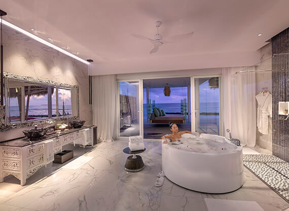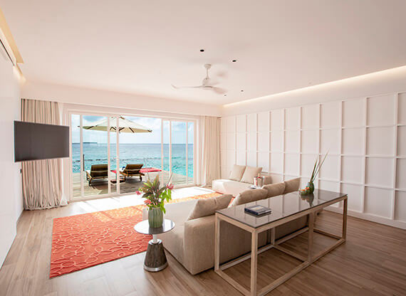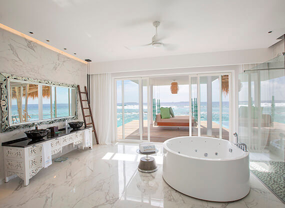 Грандиозная Superior Water Villa with Pool (Вилла супериор над водой с бассейном) – эталон роскоши и приватности, созданный Emerald Maldives Resort & Spa для самых взыскательных гостей. Очаровательное трио из спальни king-size, просторной гостиной и стильной ванной придется по вкусу самым рафинированным ценителям эксклюзива. Панорамы нежных рассветов и ликующих закатов заставят замереть от восторга даже окаменевшее сердце жителя современного мегаполиса.