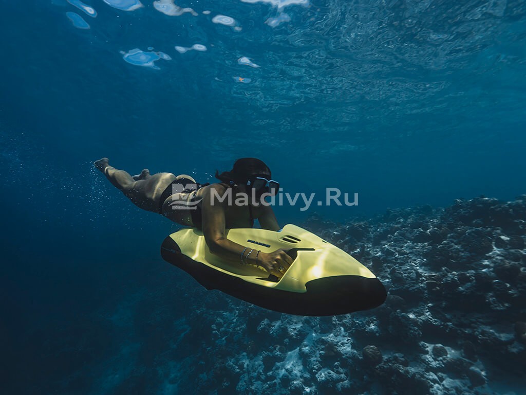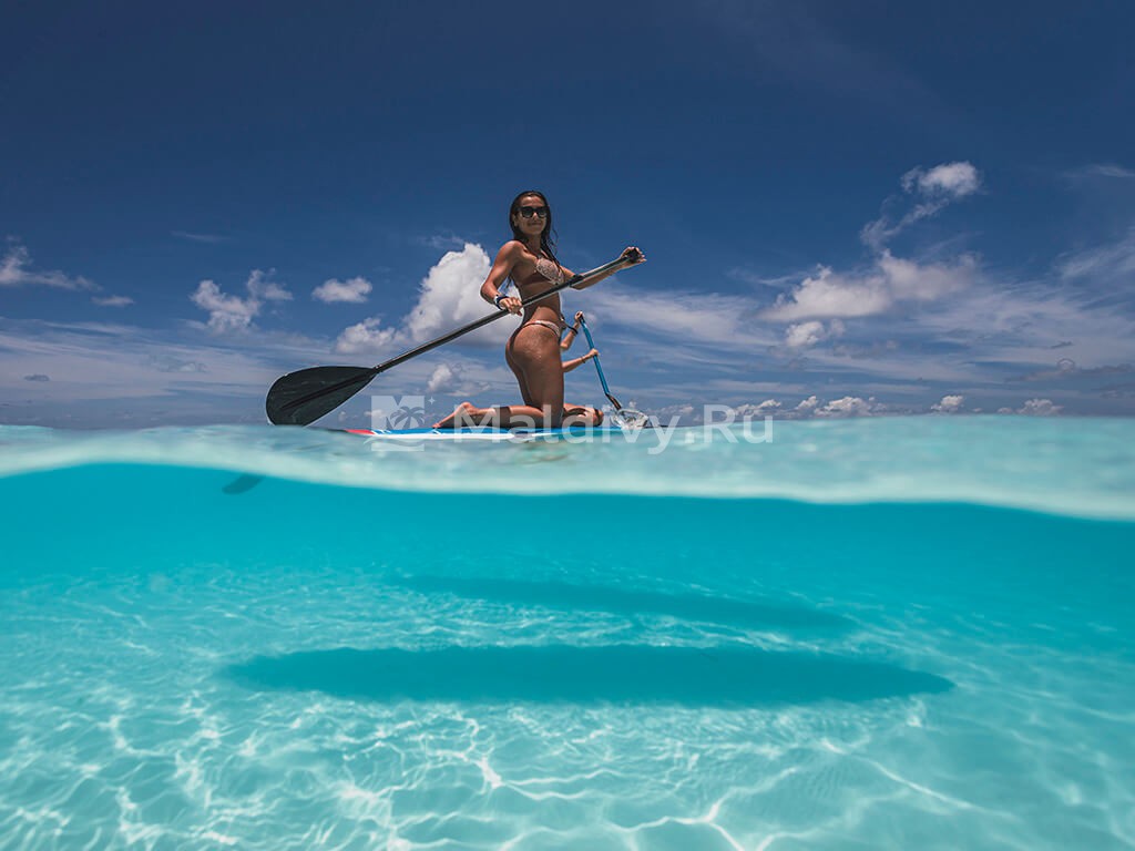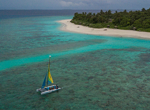Домашний риф отеля по-настоящему впечатляет: коралловые сады изобилуют разноцветными рыбками, губками, актиниями и другими подводными обитателями. Нередко встречаются скаты и морские черепахи. Все это великолепие находится буквально в нескольких метрах от берега и доступно даже детворе. При желании можно отправиться в снорк-трип по самым живописным рифам и в легендарную Ханифару-Бэй, чтобы поплавать с колоссальными мантами и китовыми акулами.