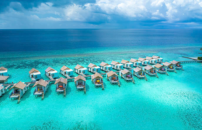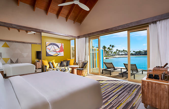 Надводная коллекция Hard Rock Hotel Maldives включает исключительно отдельные виллы и роскошные резиденции. Это уже «Платиновые» и «Бриллиантовые» «диски», предназначенные для наиболее взыскательных гостей. Надводные виллы располагаются в двух ветвях, примыкающих к острову с северо-запада и юго-востока. Венцом номерного фонда выступают Rock Royalty Overwater Pool Villa с двумя спальнями и фантастическая резиденция Rock Star Villa, достойная рок-звезды мирового масштаба.
