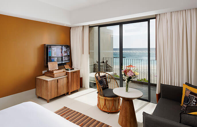 «Серебряная» и «Золотая» часть номерного фонда располагается на берегу. В первую очередь, это стильные студии и двухуровневые люксы Silver в красивых двухэтажных корпусах, выстроившихся вдоль широких пляжей. Все номера доступны в вариациях king-size или twin, имеют отдельные ванные с душевыми, балконы или террасы. Отдельные виллы – это уже «Золото»: роскошные Gold Beach Villa и Gold Beach Pool Villa.