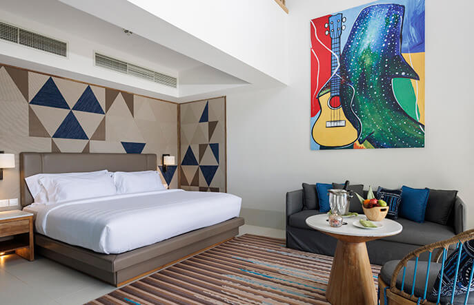 Номерной фонд Hard Rock Hotel Maldives включает 178 стильных студий, дуплексов, отдельных вилл и роскошных резиденций. Все они оформлены в ярком свободном стиле рок-н-ролла, но с узнаваемыми нотками мальдивской аутентики. В номерах установлены потрясающие кровати Simmons Cool Max. Программа The Sound of Stay (гитары Fender, аппаратура Crosley, пластинки Wax, возможность создать собственный плейлист) делает пребывание особенным, наполняя каждый день любимой музыкой и импровизациями. Даже названия категорий номеров созвучны тиражам культовых дисков!