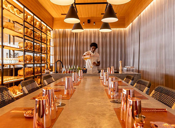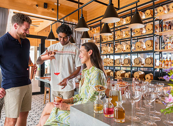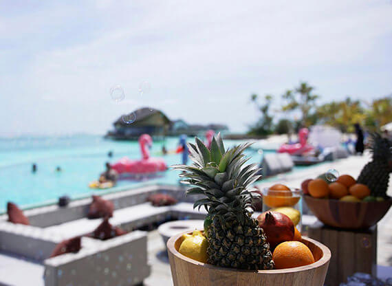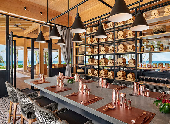 Aura Pool Bar & Cocktail Lab – великолепный альянс классического лаунжа у бассейна и уникальной лаборатории коктейлей – первой на Мальдивах. С самого утра гости Hilton Maldives Amingiri Resort могут наслаждаться беззаботным релаксом под закуски и напитки, потом пообедать, а в определенные дни – и поужинать в динамичном ресторане азиатской кухни. Не забудьте попробовать экологически чистые коктейли на свежесваренных биттерах и взять мастер-класс по искусству миксологии!
