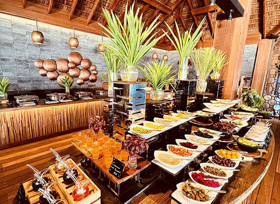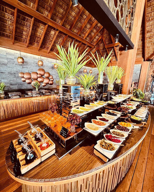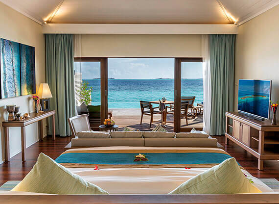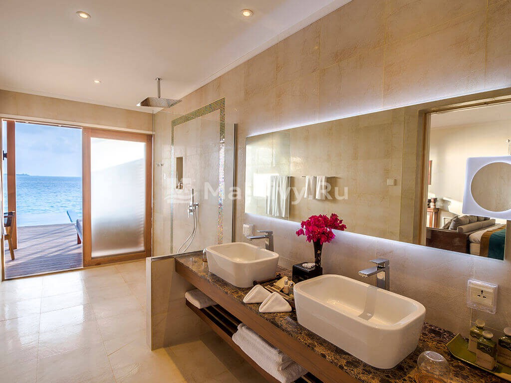 Номерной фонд отеля не отличается большим разнообразием: в него входят 90 береговых и надводных вилл лишь в пяти категориях. Все они великолепны: огромные спальни и ванные, стильные интерьеры, просторные террасы, современная техника, круглосуточный рум-сервис. Большинство вилл дополнено приватными бассейнами – не забудьте побаловать себя изысканным плавучим завтраком!